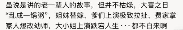 “姐妹替嫁”“两个爹的极限拉扯”“费家掌门人爆改幼师”等等评论数不胜数。