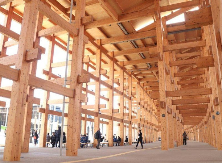 作为本届世博的象征建筑,这座直径超过600米、周长约2公里、建筑面积超过6000平方米的木结构圆环,日前已获吉尼斯世界纪录认证为全球最大的木造建筑。结构上运用日本神社与寺庙常见的横梁构件“贯(ぬき)”,同时融入现代技术确保稳固性,将传统与创新巧妙结合。