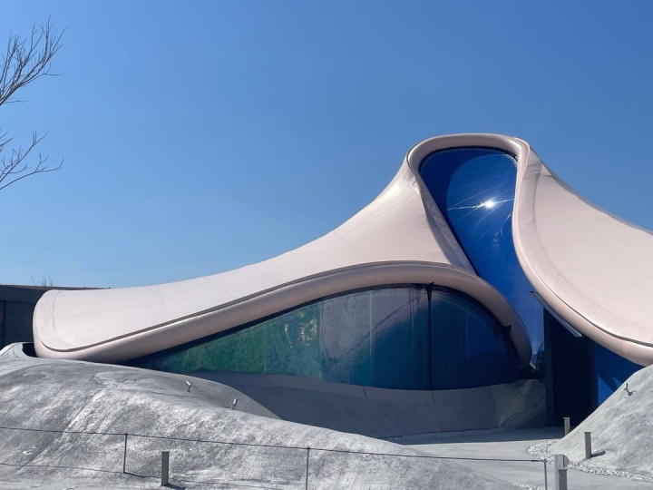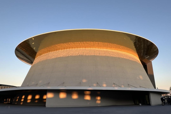 由建筑大师伊东丰雄操刀设计,以钢材为主要结构,塑造出坚实而充满力量的建筑形态。金色圆形屋顶闪耀夺目,与粗犷的墙面形成鲜明对比,而远远望去,还会形成连接天地的「天空黑洞」效果!