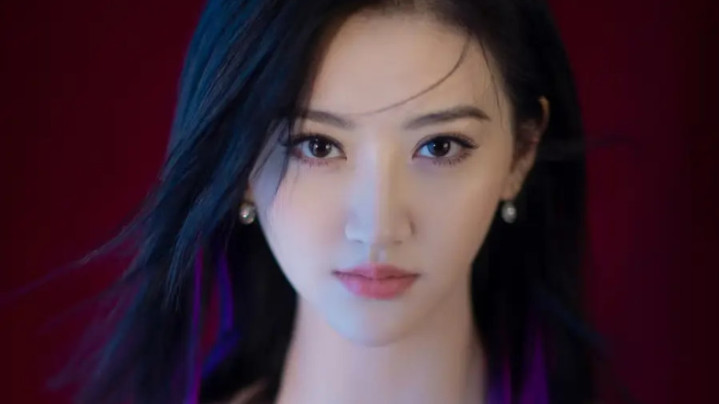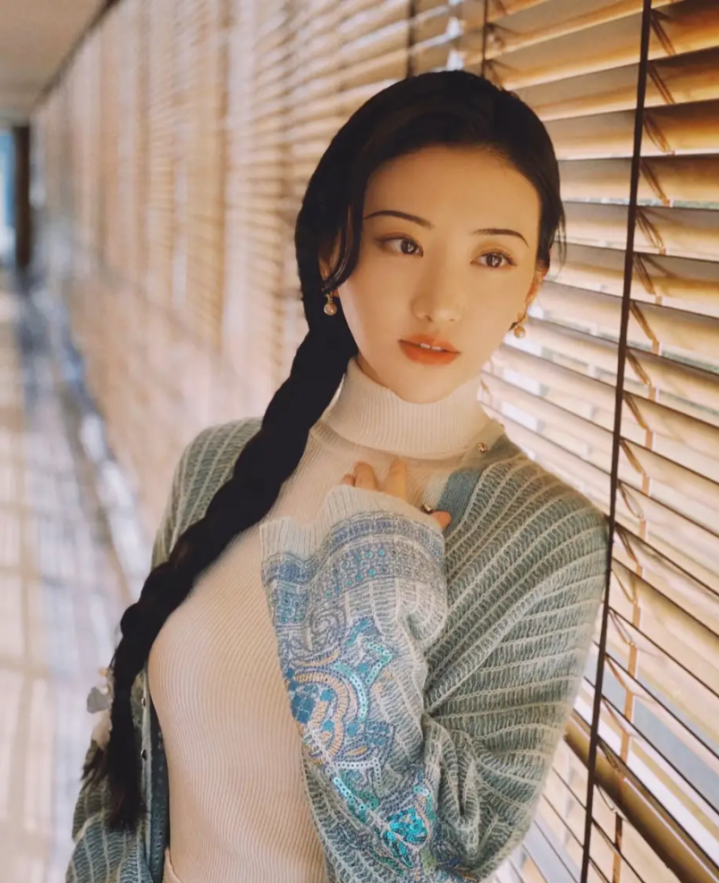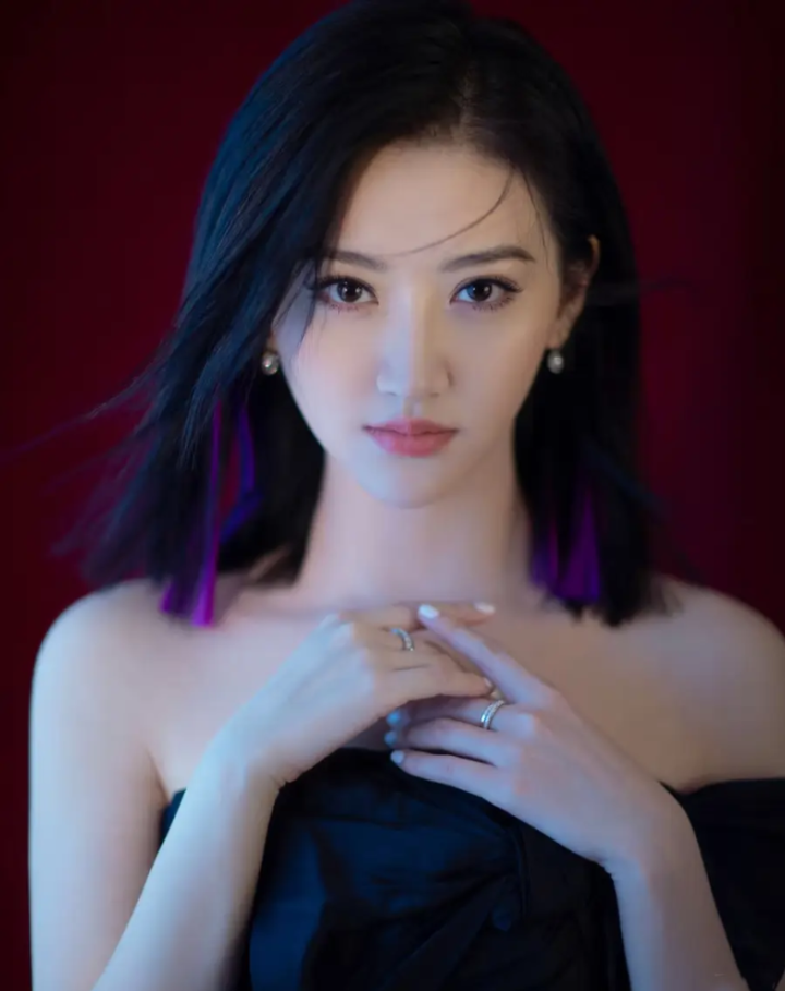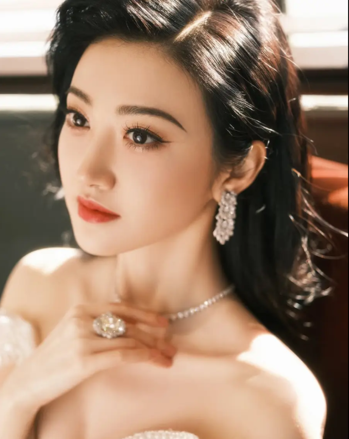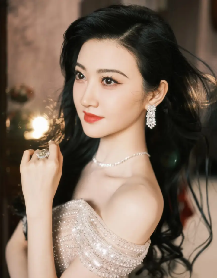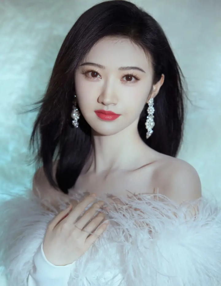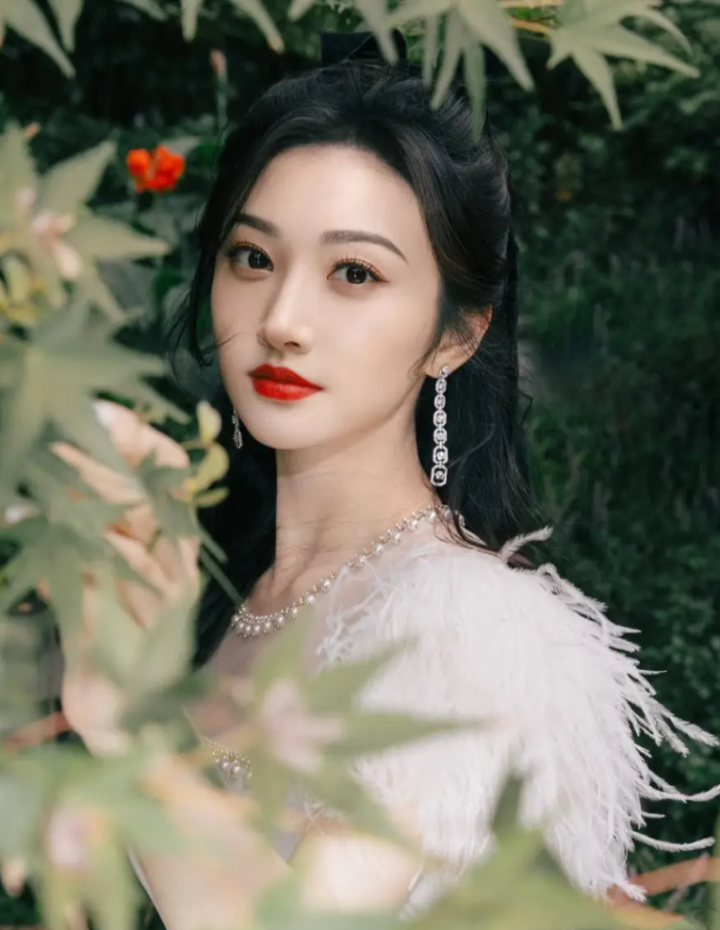 景甜美照, 长发飞扬, 身材窈窕如仕女, 烈焰红唇火似骄阳