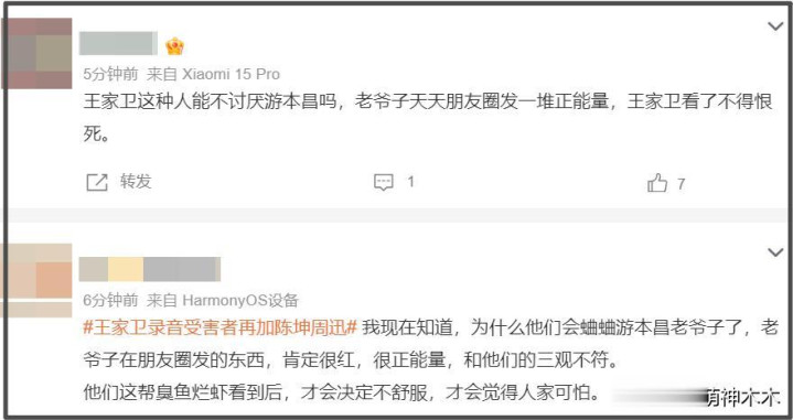 还有网友想到王家卫和秦雯背后嘲讽92岁游本昌老爷子,结合王家卫对李爽的态度,原来只有崇洋媚外才能当他们自己人啊!