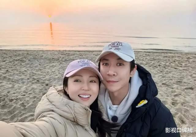 张维伊留着一头短发,穿着黑色皮衣。这样的打扮感觉他挺帅气的。董璇挽着张维伊手臂一起合照,一脸幸福。