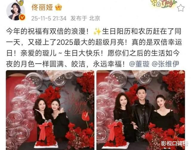知名演员佟丽娅更新了社交平台,文案是:双倍浪漫+超级月亮!从她晒出的照片中看,原来为好闺蜜董璇庆祝46岁生日。