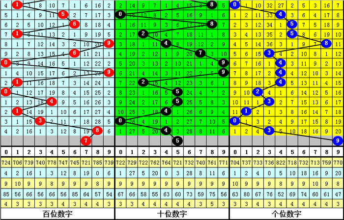 另外,在组选0-9的号码分布中,号码5、6、8表现最冷,开出8次;号码1走势最热,开出了16次。本期预计号码组1568中落号,参考号码58。