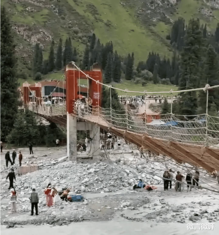 昨天下午,新疆伊犁哈萨克自治州昭苏县夏塔景区,一座很红的吊桥,其中一条桥索断裂,发生严重的桥面倾斜事故。