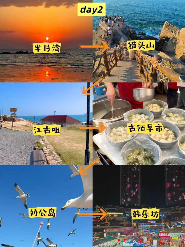 Day2️⃣半月湾日出—猫头山—江古咀—古陌早市—刘公岛—韩乐坊