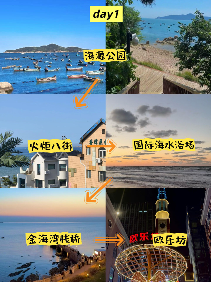 Day1️⃣海源公园—火炬八街—国际海水浴场—金海湾栈桥—欧乐坊